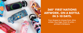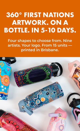 That's what Yarn's NAIDOC 2026 drinkware does. Four shapes to choose from, nine artists, your logo. From 15 units, printed in Brisbane.