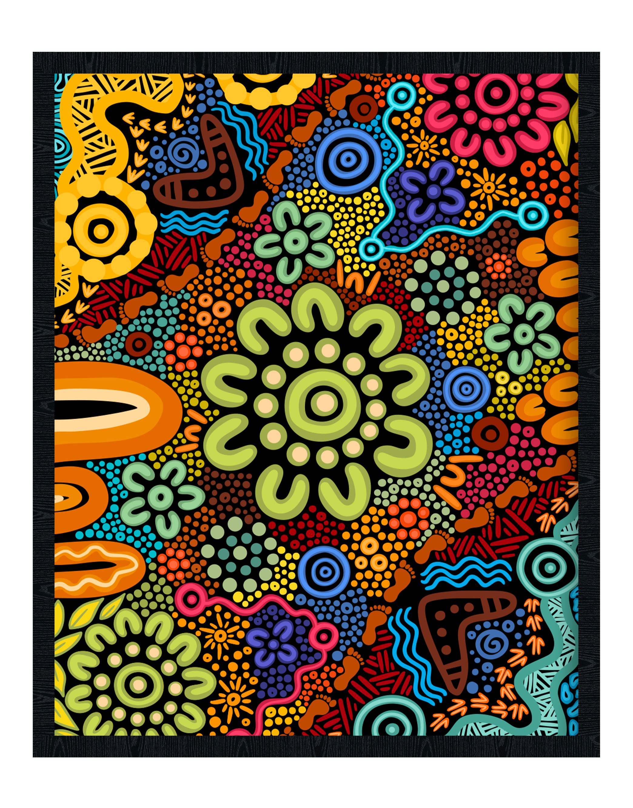 This design represents the incredible journey of our people over the thousands of years on this land. The 50 is brought to life through symbols that showcase the depth of our culture and connection to Country.Each element has been thoughtfully included: plants and animals represent the natural world that has always sustained us, while community symbols and camps highlight the strength and unity of our people. Water, the lifeblood of our land, flows through the design, symbolising renewal and continuity. The footprints show the paths our people have walked, the enduring connection to Country, and the resilience that has carried us forward.This design is a celebration of resilience, strength, and connection. It not only honours the 50 years of NAIDOC Week but also recognises the ongoing legacy of 65,000 years of survival, culture, and knowledge. It's a reminder of the journey we've taken, the stories we've shared, and the future we continue to build together.