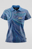 It portrays the intricate, respectful, spiritually and physically dependent, grateful, and protective ties to Country that gives us strength, resilience and a hope for the future. Within this Country, the painting speaks of the past and ongoing connections between Australia’s First Nations People, languages and Country.