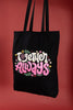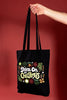 Festive Feels Only Black Long Handle Cotton Tote Bag
