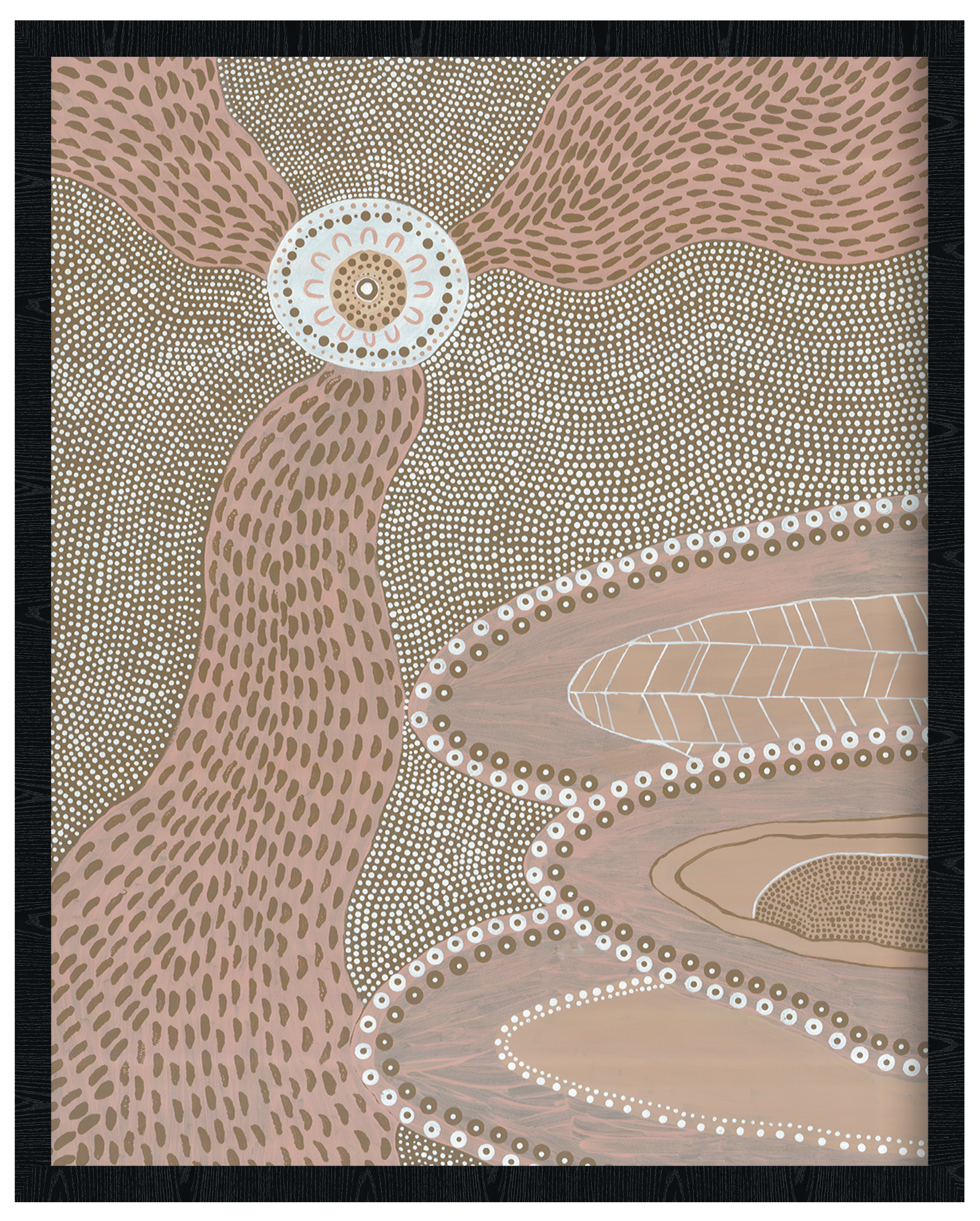 This piece represents the hinterland on a beautiful day. The mountains shining under the sun. This piece will always be very special to me as this was my very first piece ever painted and released to the public. This piece represents an amazing day in the hinterlands, Sun shining over the mountains and bringing everyone together. I painted this piece for the beautiful sunrises/sunset that we see either rising or setting behind the mountains on this amazing country.