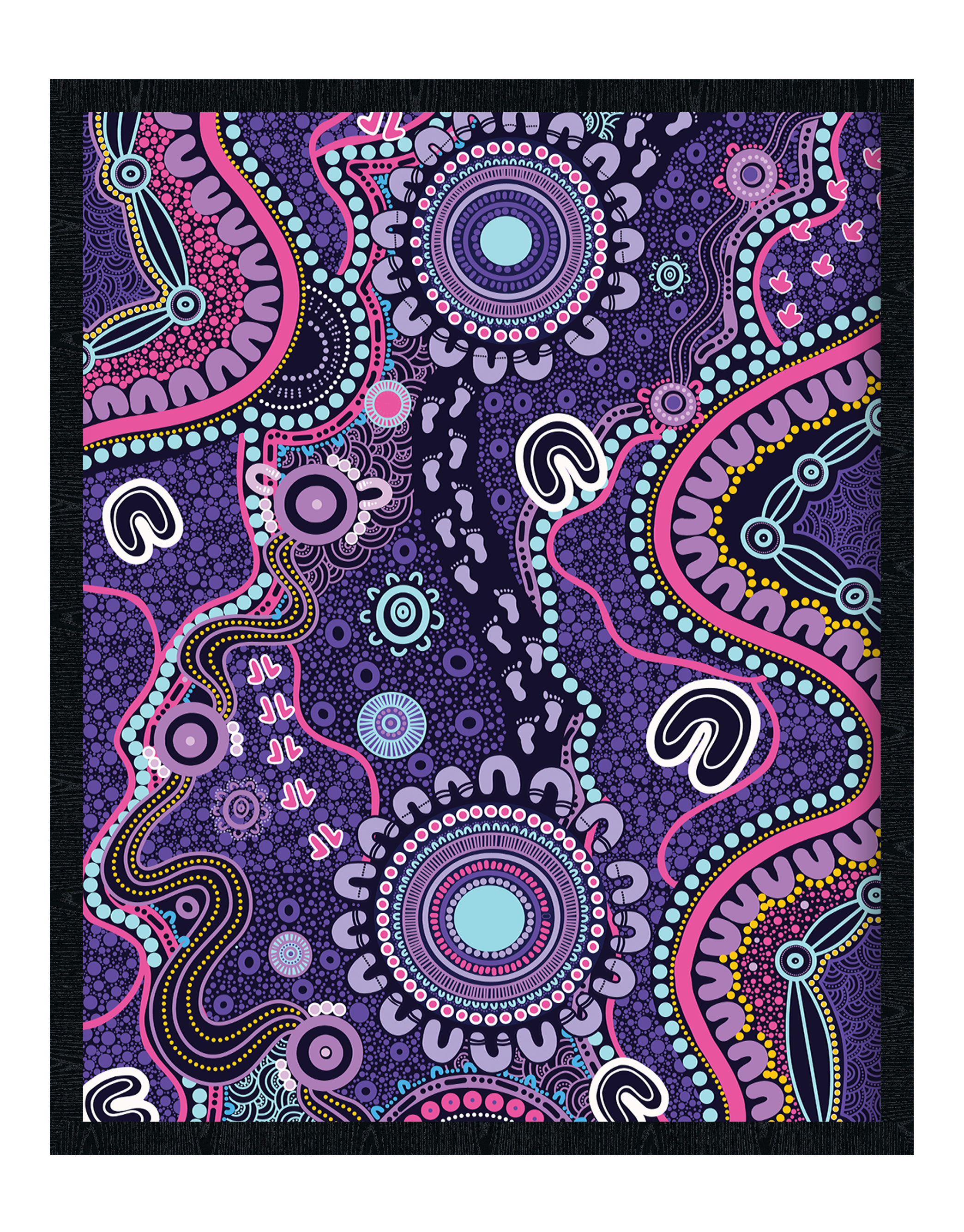 This artwork represents our significant history, our ancestors' journeys, and our Muru (pathway) to our Biriwal (future) with our next generation.